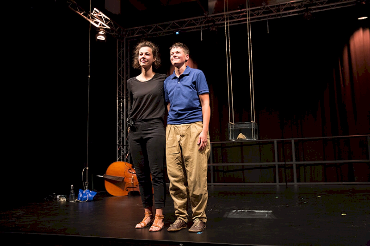 Der 2. Preis der Jury geht an Rafi Martin aus Frankreich, dessen Performance »/NOT/ in my name« Fragen nach kultureller Identität, Migration und der eigenen Familiengeschichte verhandelt. Rafi Martin verfolgt die Spuren seiner Familie zurück nach Russland, zurück zu Namen, die ganz anders klingen... Klug inszeniert mit einem schwebenden Aquarium, Masken und atmosphärisch dichten Sounds (Musik: Camille Martin). Die weiteren FinalistInnen des Abends waren Sarah Wissner mit »The Dark Trullala«, Emilien Truche mit »Confetti« sowie Laura Witzleben mit »A very happy piece«. Moderiert wurde das Finale und die Preisverleihung von Christina Wolf, BR.