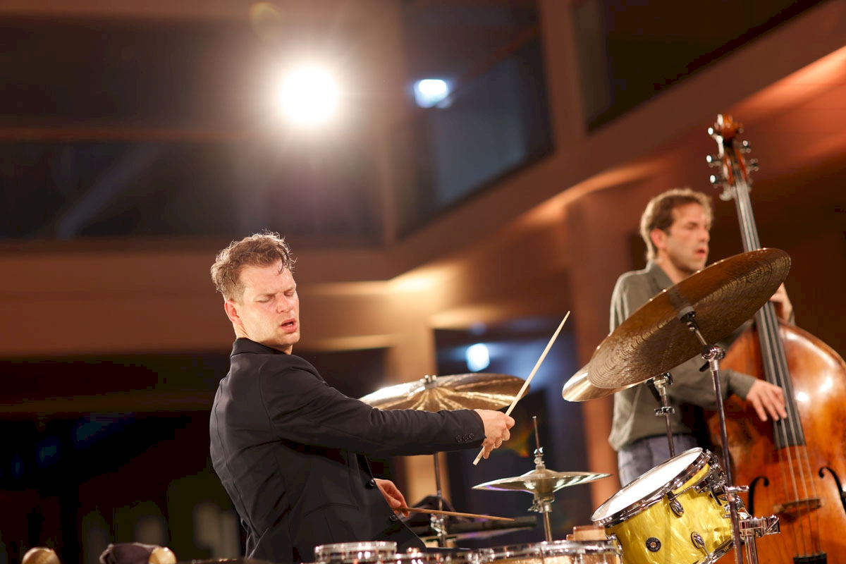 Was passiert, wenn eine auf zeitgenössische Musik spezialisierte Pianistin auf drei Avantgardemusiker trifft und sie gemeinsam in Echtzeit komponieren? Wenn moderne Klavierstücke zusammen mit einem Trio aus Vibraphon, Schlagzeug und Kontrabass hochvirtuos weitergedacht und gespielt werden?